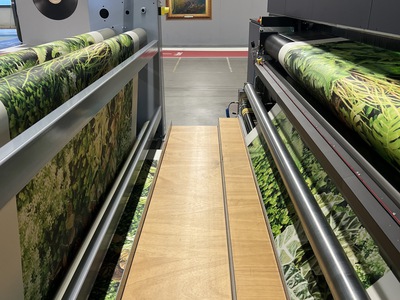 Als het definitieve ontwerp en de juiste afmeting helemaal goed zijn begint het fabricageproces. De vloer wordt opgedeeld in banen van 4 meter breed en de productie kan starten. De productie vindt plaats in onze eigen productiehal in Kolham. De vloer wordt geprint en tijdens dit proces letten wij er goed op dat de vloer perfect wordt. Na productie worden de delen, indien gewenst, gesneden en opgerold. Klaar voor verzending.