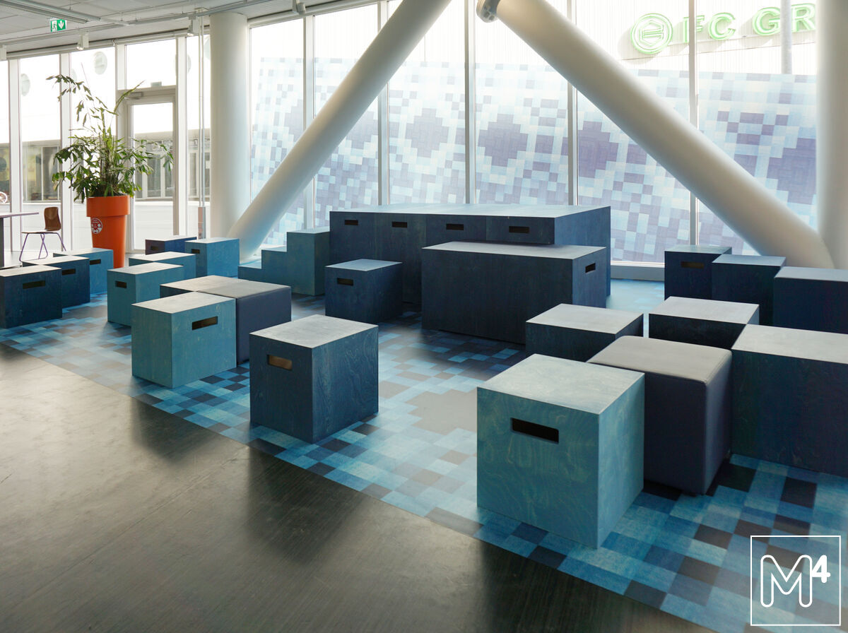 Naar ontwerp van Groninger interieurburo GRIB mochten wij een aantal vloeren produceren voor het Alfa College in Groningen, locatie Boumaboulevard.