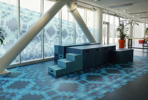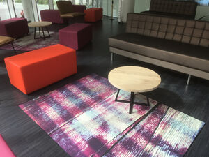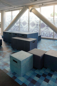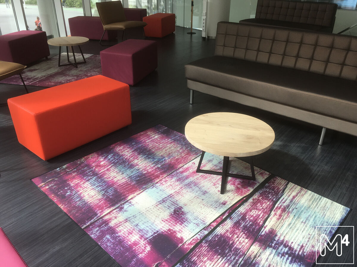 Op deze locatie zijn er vloerdelen geplaatst op de bestaande vloer. Daarnaast zijn een aantal vinylkarpetten gemaakt; deze karpetten zorgen voor sfeer en uitstraling maar zijn wel gemakkelijk schoon te houden en slijtvast. Voor schoolomgevingen is dit een ideaal alternatief voor een standaard tapijtkarpet.