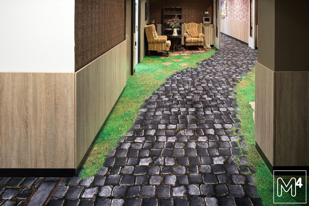 Voor een verzorgingstehuis voor dementerende ouderen in Groningen hebben we verschillende vloeren ontworpen en geproduceerd. Een omgeving creeren die beter aansluit op de belevingswereld van de doelgroep.