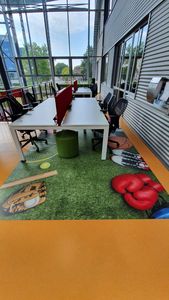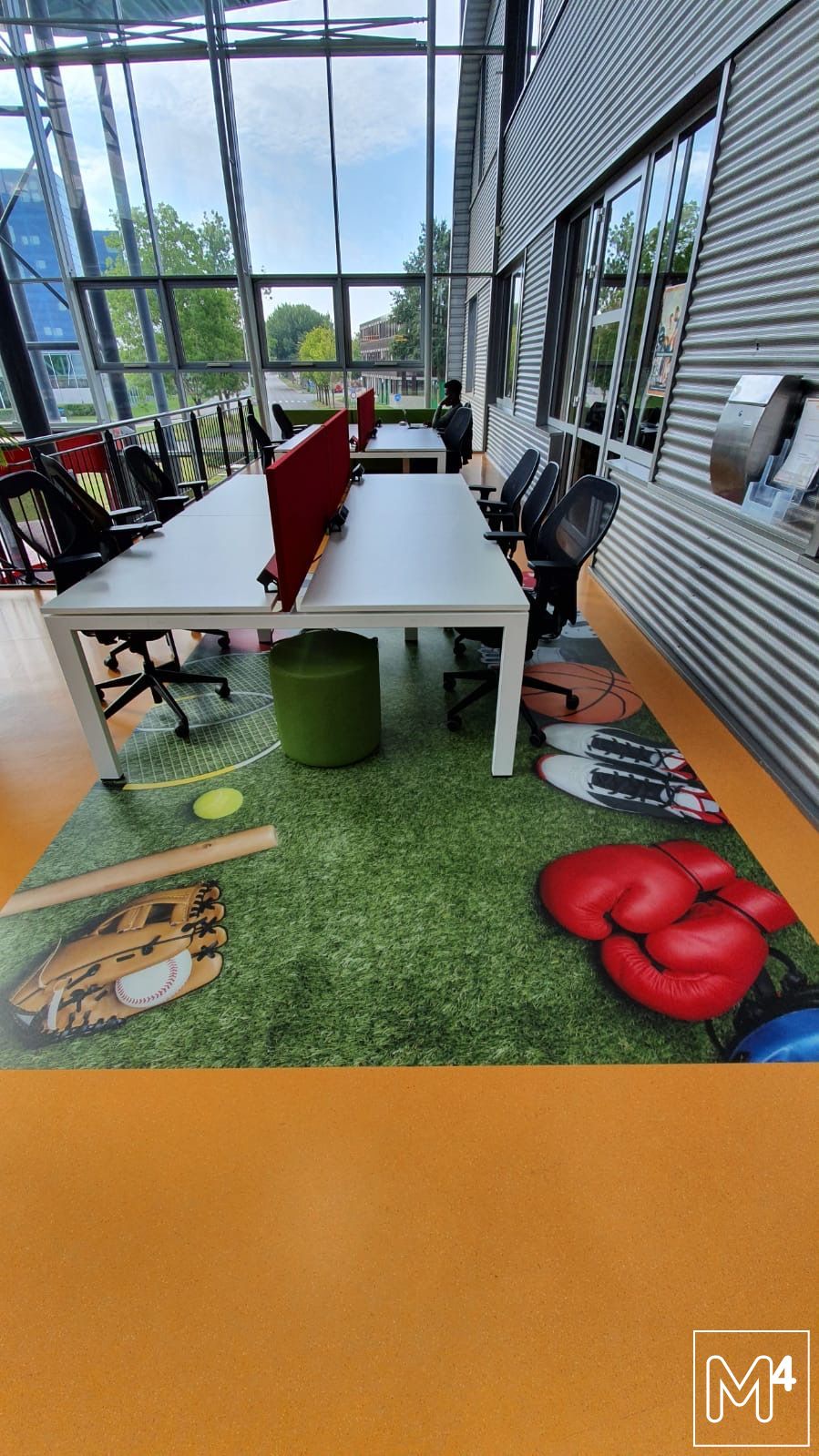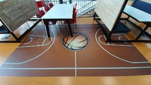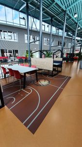 Voor de afdeling Sportstudies mochten wij een 2-tal inlays produceren die in de bestaande vloer zijn gelegd.