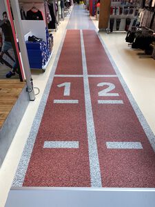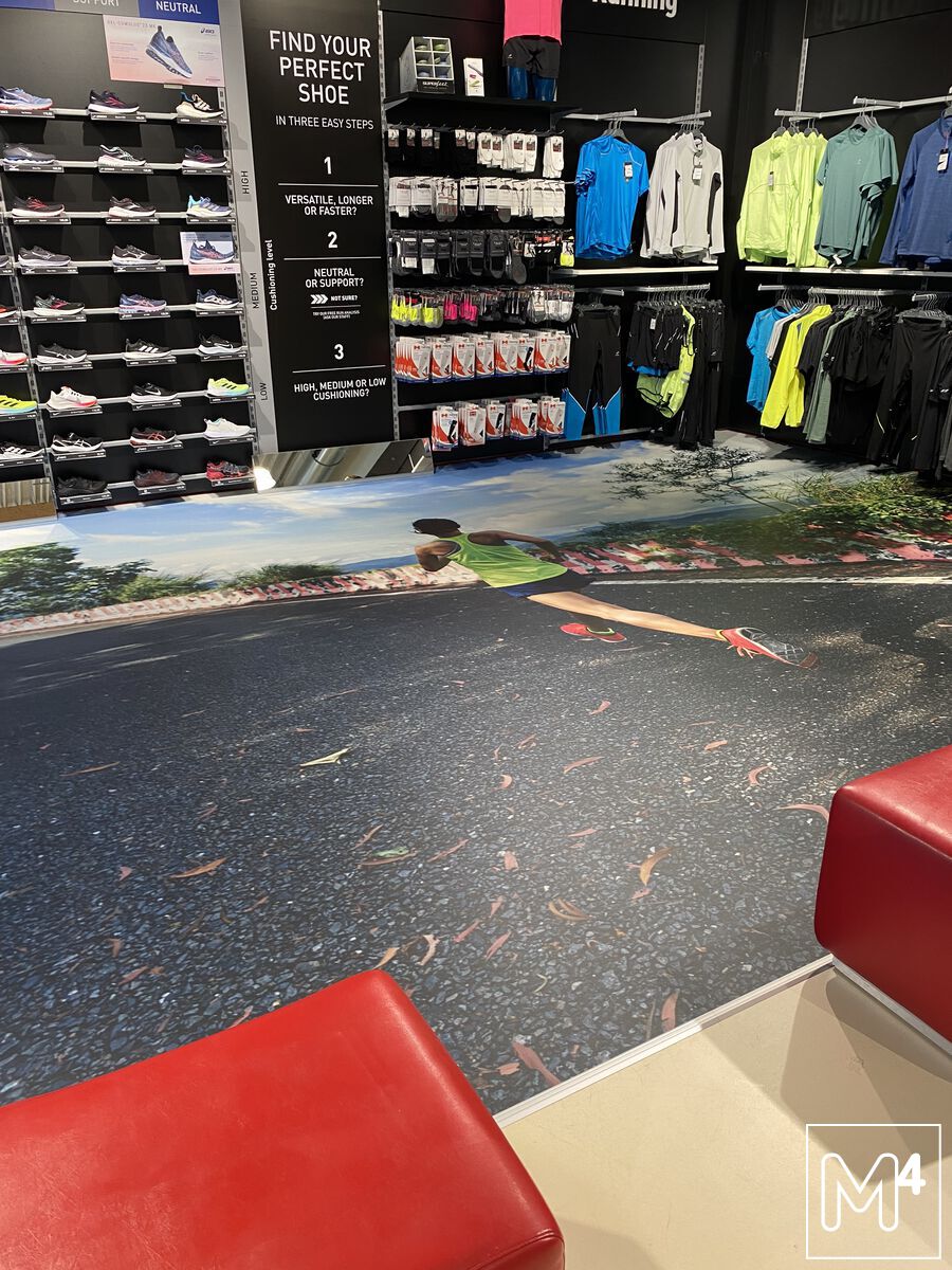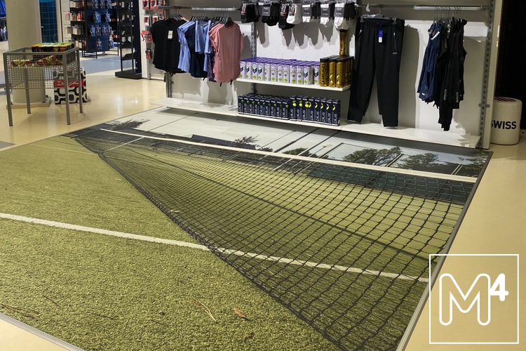 Klantbeleving in de retail is steeds belangrijker. Deze klant wilde graag een aantal gebieden in zijn winkel meer sfeer en beleving geven. Wij hebben voor deze afdelingen passende beelden gemaakt en geprint op de PRO. Installatie heeft plaatgevonden op de bestaanden vloer, afgewerkt met een aluminium profiel.