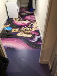 Nail-art bar Lakwerk in Amsterdam tovert nagels om tot een heus kunstwerk. Voor hun studio mochten wij kunstzinnige vloeren ontwerpen en produceren.
