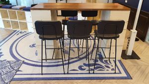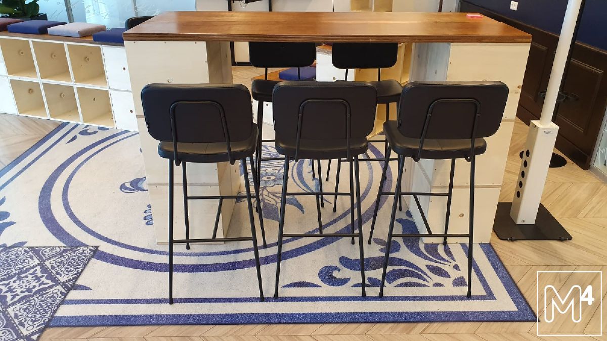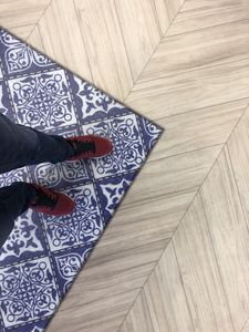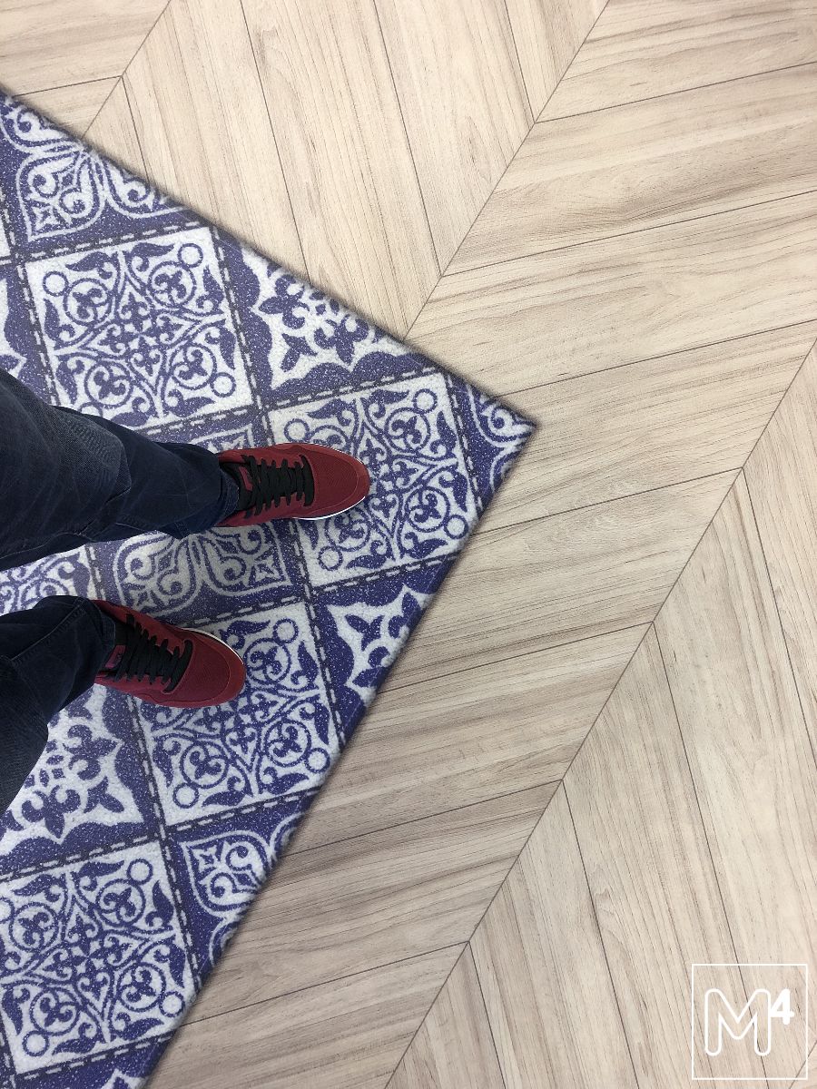 Samen met een interieurontwerper werd er gekozen voor een combinatie van houtmotief met een aantal kleden. Doordat de kleden zijn geprint zijn deze makkelijk schoon te houden en vormen ze geen struikelgevaar. Er is zelfs voor gekozen om een aantal kleden over elkaar heen te leggen. De sfeer van vloerkleden maar dan wel praktisch in gebruik.