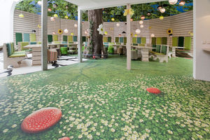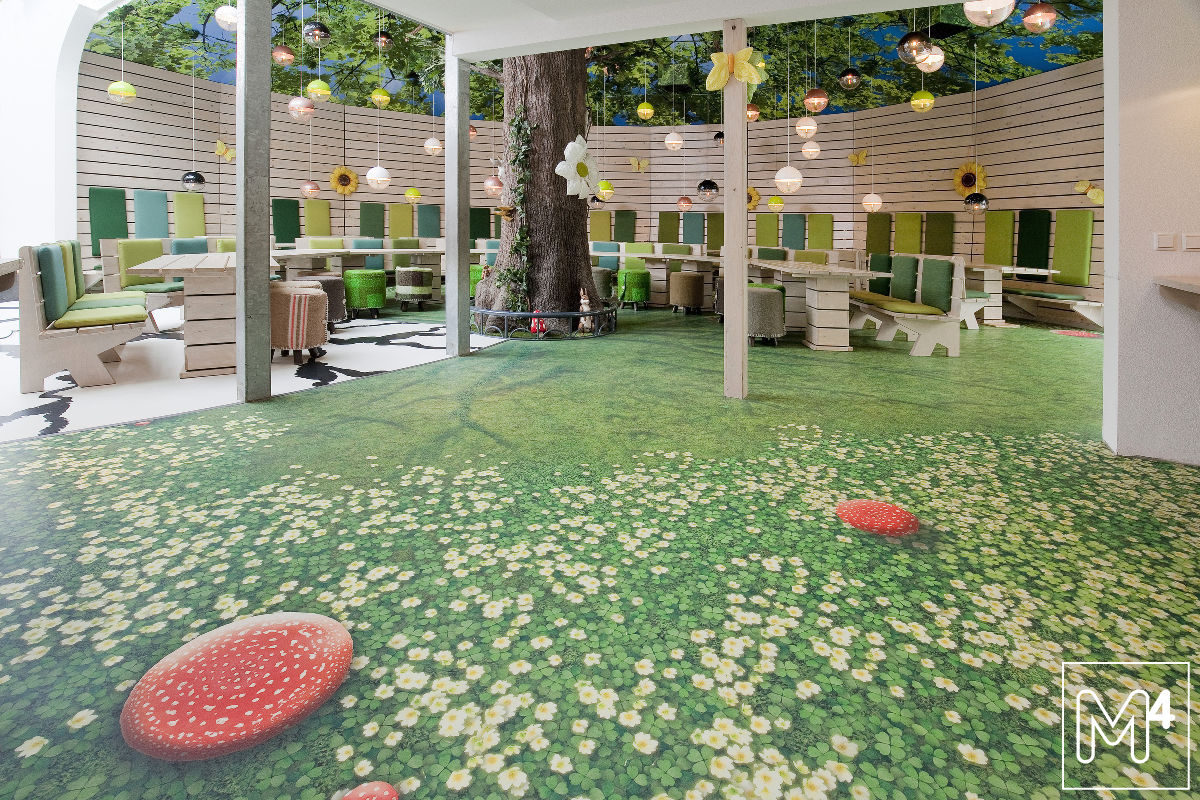 Villa Pardoes in kaatsheuvel biedt zieke kinderen en hun gezin een droomvakantie. In de gezamenlijke ruimte, de zogenaamde 'picknickplaats' is een sprookjesachtig decor gecreerd doormiddel van prachtige vloer- en wandprints.