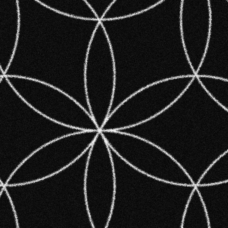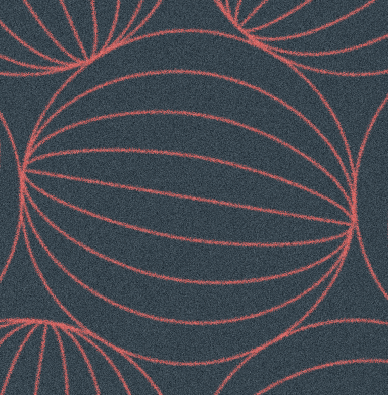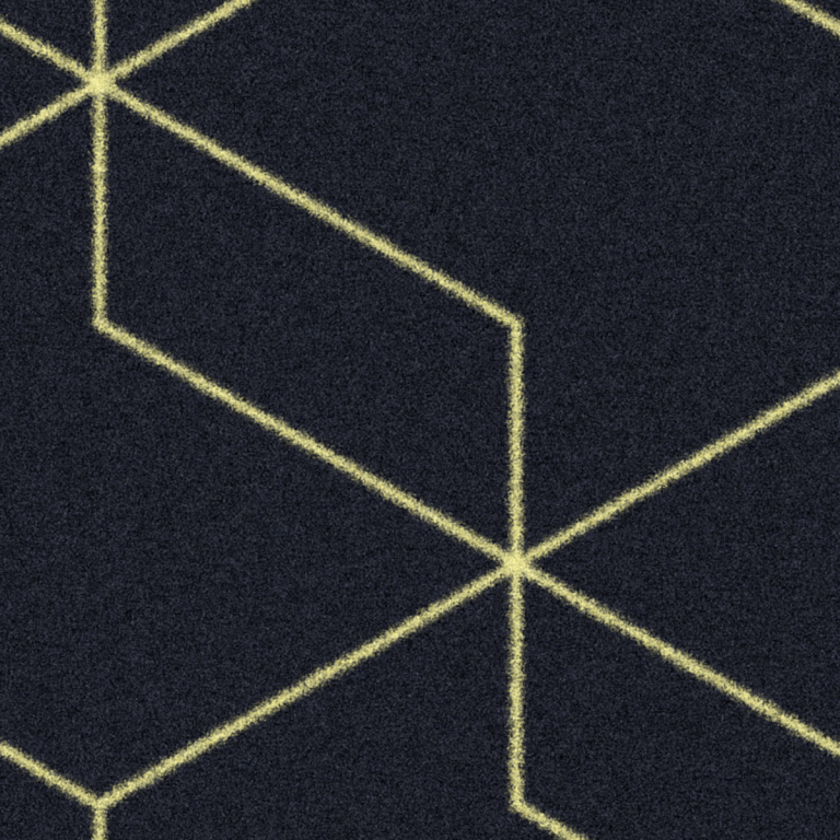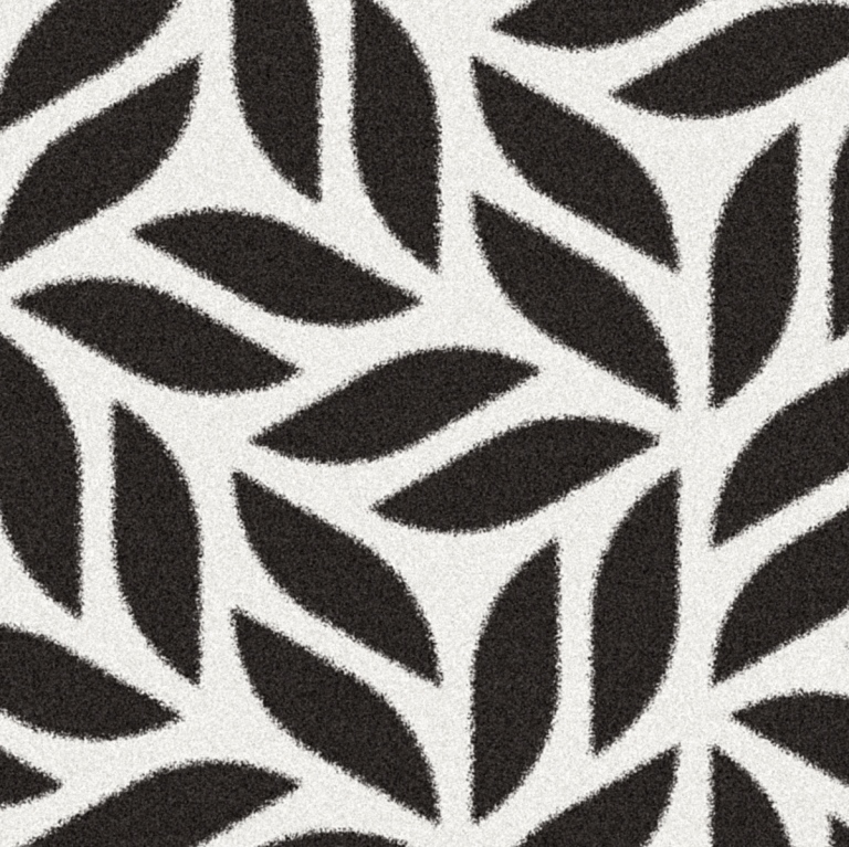 Tal van grafische patronen die worden bewerkt waardoor de print een tapijt-look krijgt.